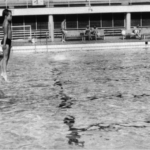 I řada učitelů a patriotů z našeho břehu Vltavy pod památným Vyšehradem se v Podolí naučila plavat a skákat z věže. Jako obrazovou ukázku z letité historie bych doložil svými fotografiemi, neboť i já jsem se zde naučil v pěti letech plavat. Fotky mě zachycují při vstupu do školy, při mém prvním skoku z věže a běžném skoku ve venkovní padesátce. A jak je vidět na dobovém snímku, zmíněná skulptura Vladimíra Janouška zde už tehdy opravdu stála. Ani dnes ji nelze z ulice ani tramvaje přehlédnout. S úspěchy našich plavců je pro mne dodnes jistým symbolem a nostalgickou vzpomínkou na minulost, ale i žhavou současnost našeho Podolí.