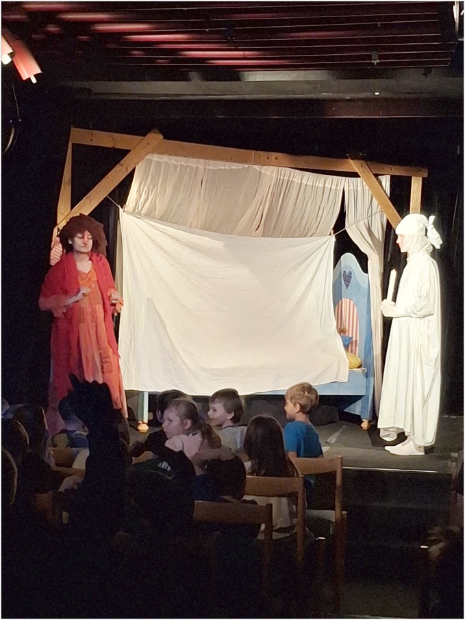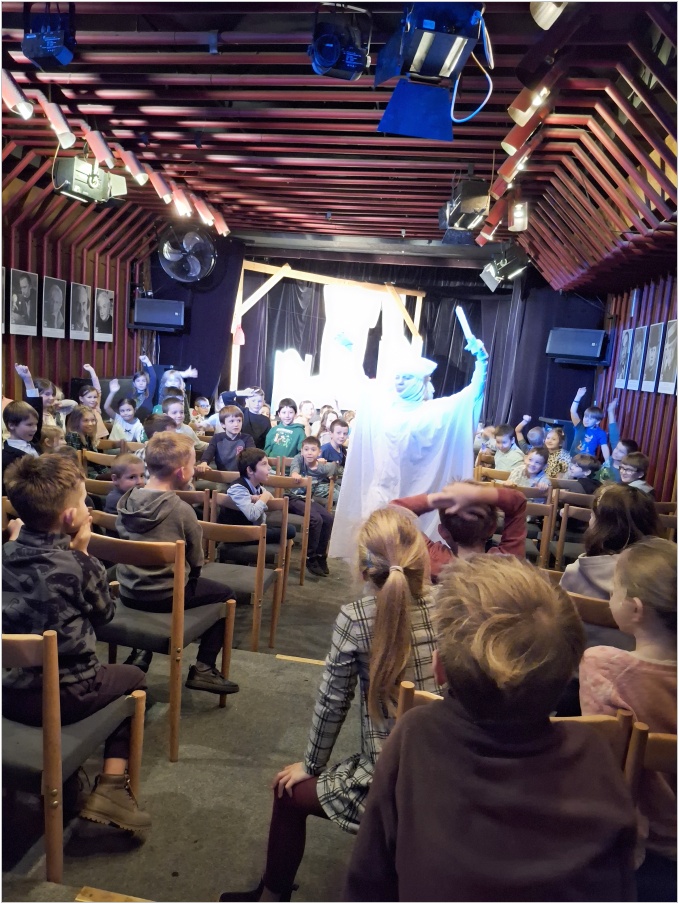 dnes 3.11. jsme byli s dětmi z prvních a druhých tříd v divadle Minaret na představení Strašidla. Jednalo se o představení, kdy dvě Strašidla učí své Strašidlo strašit. Což se nakonec povedlo. Děti reagovaly na situace. Některé se smály, jiné se bály.