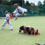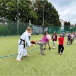 Ve středu 10. září proběhla na hřišti ukázková hodina olympijského korejského umění sebeobrany Taekwon-da, sportu, který na naší škole již několik let funguje jako kroužek. Lektoři předvedli ukázky bojových sestav, obranných úderů a kopů. Poté si rozdělili děti do skupin s praktickou výukou.
